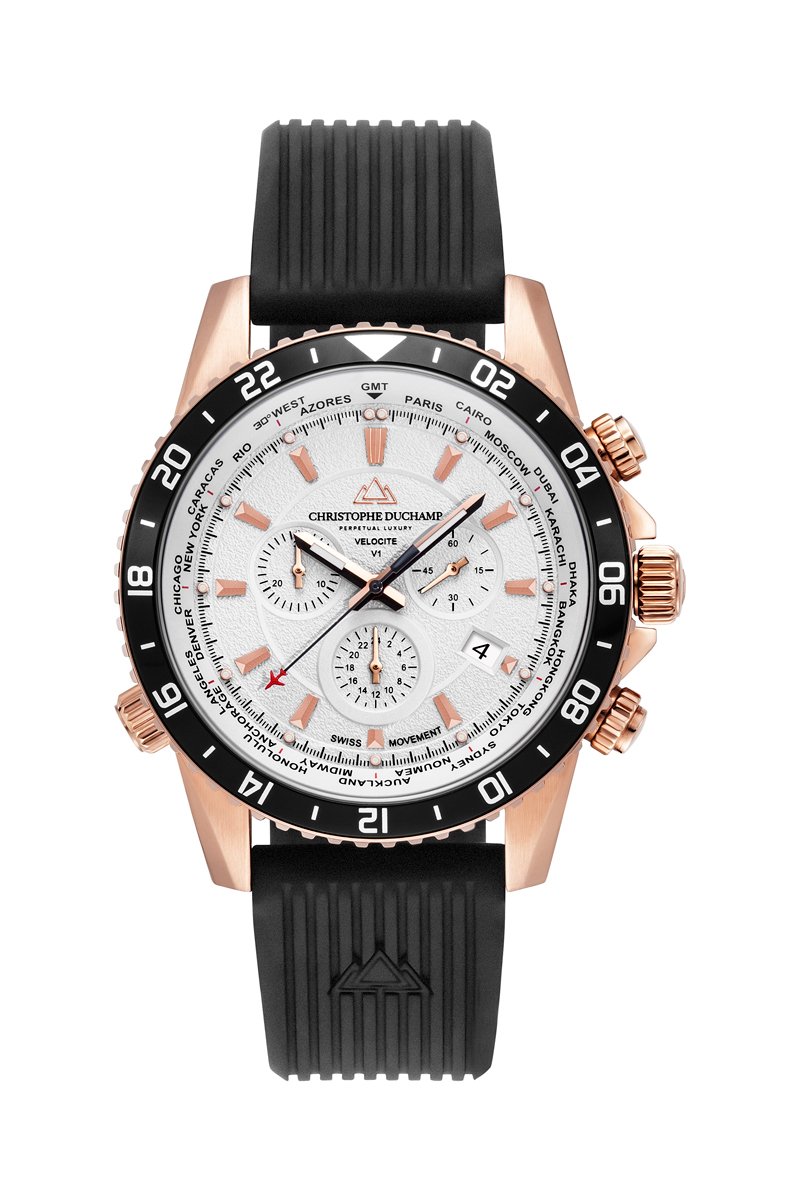 Montre à quartz en caoutchouc Velocite V1 – Chronographe et GMT - Noir et doré rose