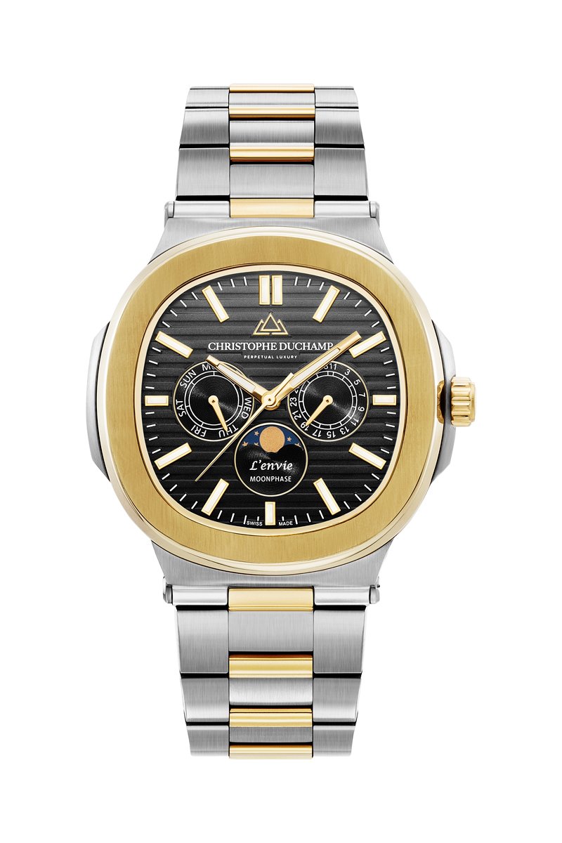 Montre à quartz en acier L'envie - Compteur phases de lune - Argenté et doré