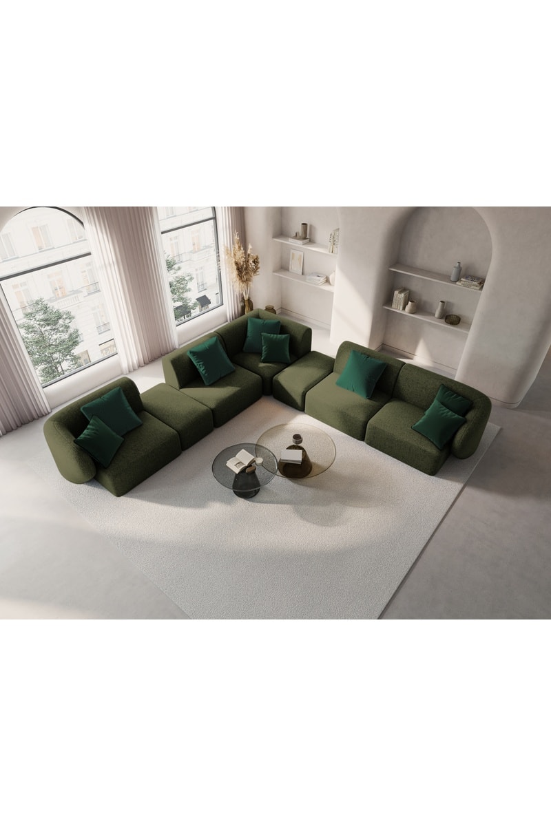 Canapé d'angle symétrique modulaire Chiara - Vert chiné - 7 places - En tissu chenille