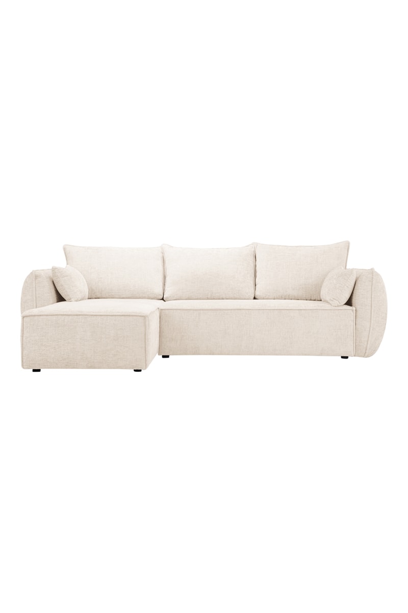 Canapé d’angle gauche convertible Vanda - Beige clair - 4 places - En tissu chenille