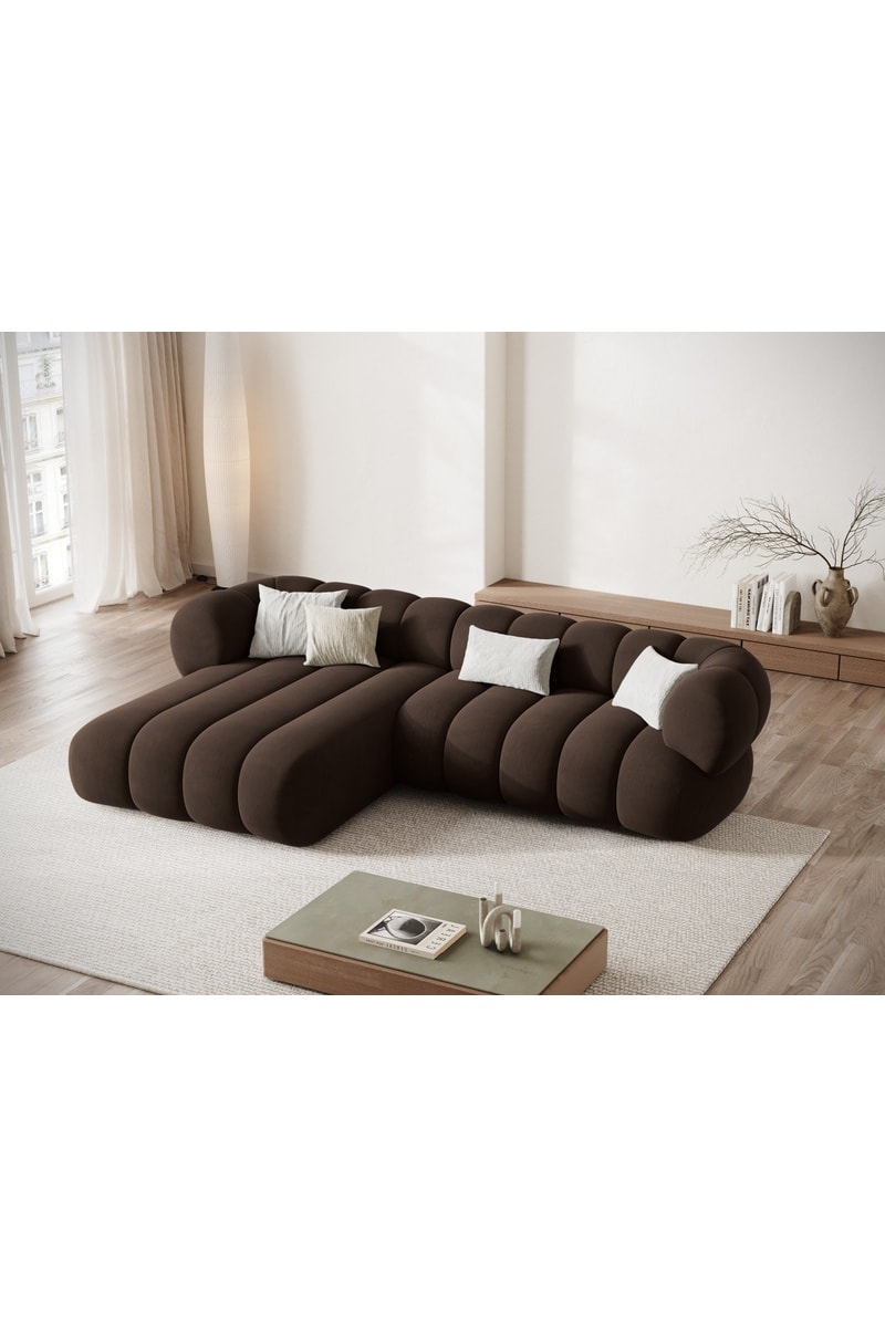 Canapé d’angle gauche Koge - Marron - 5 places - En tissu velours