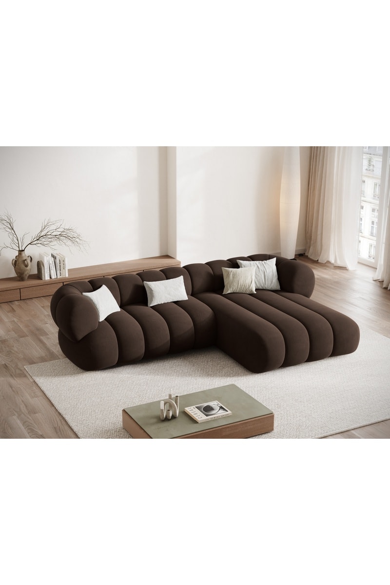 Canapé d’angle droit Koge - Marron - 5 places - En tissu velours