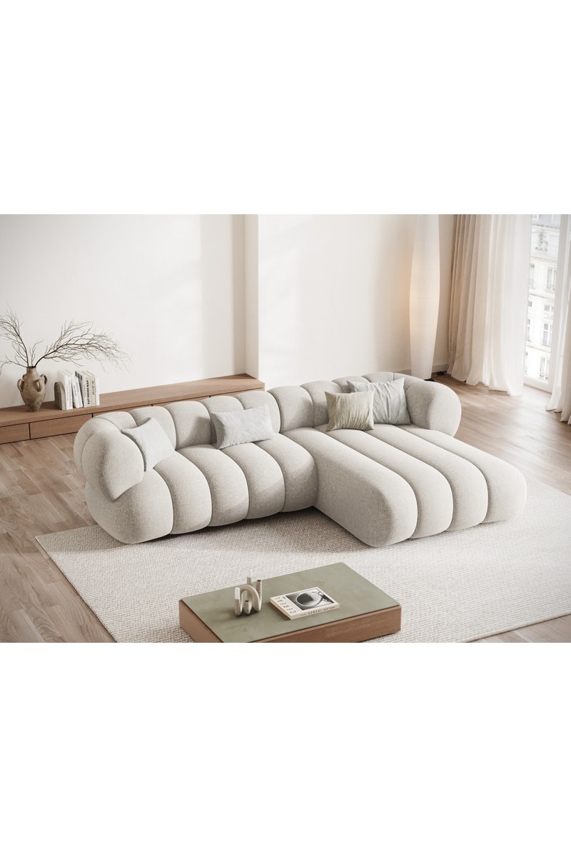 Canapé d’angle droit Koge - Beige clair - 5 places - En tissu chenille