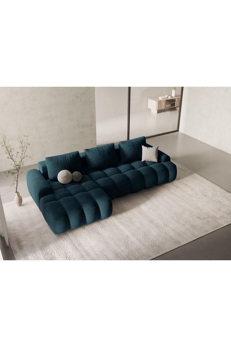 Canapé d’angle gauche convertible Orchid - Bleu pétrole - 3 places - En tissu velours