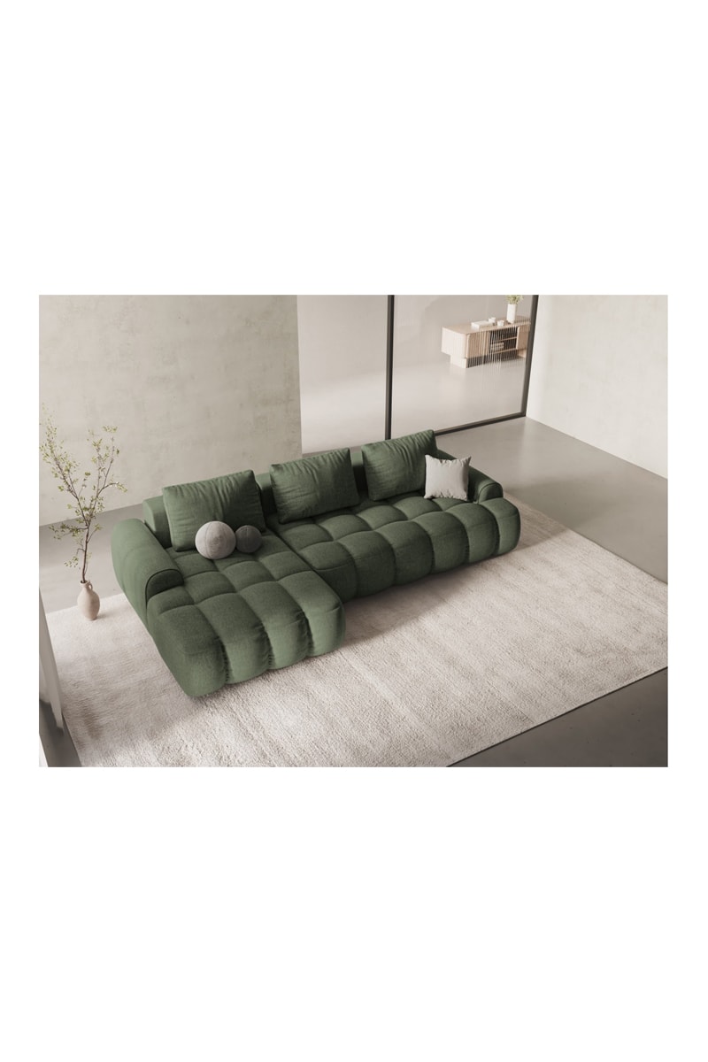 Canapé d’angle gauche convertible Orchid - Vert olive - 3 places - En tissu structurel