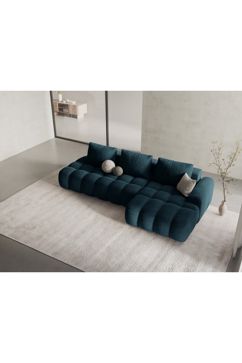 Canapé d’angle droit convertible Orchid - Bleu pétrole - 3 places - En tissu velours