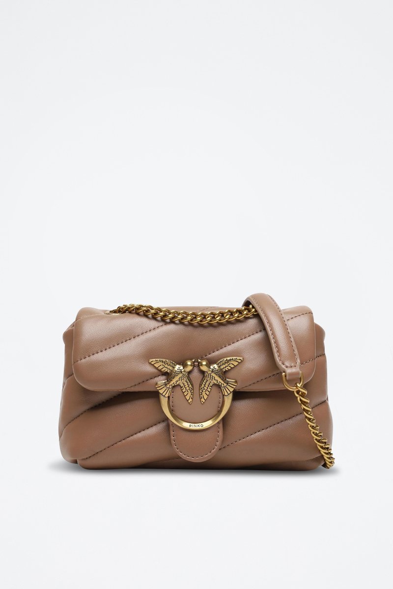 Sac bandoulière en cuir Love Puff Baby - Taupe et doré