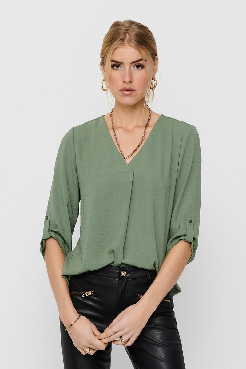 Blouse à manches 3/4 retroussables par patte boutonnée.
