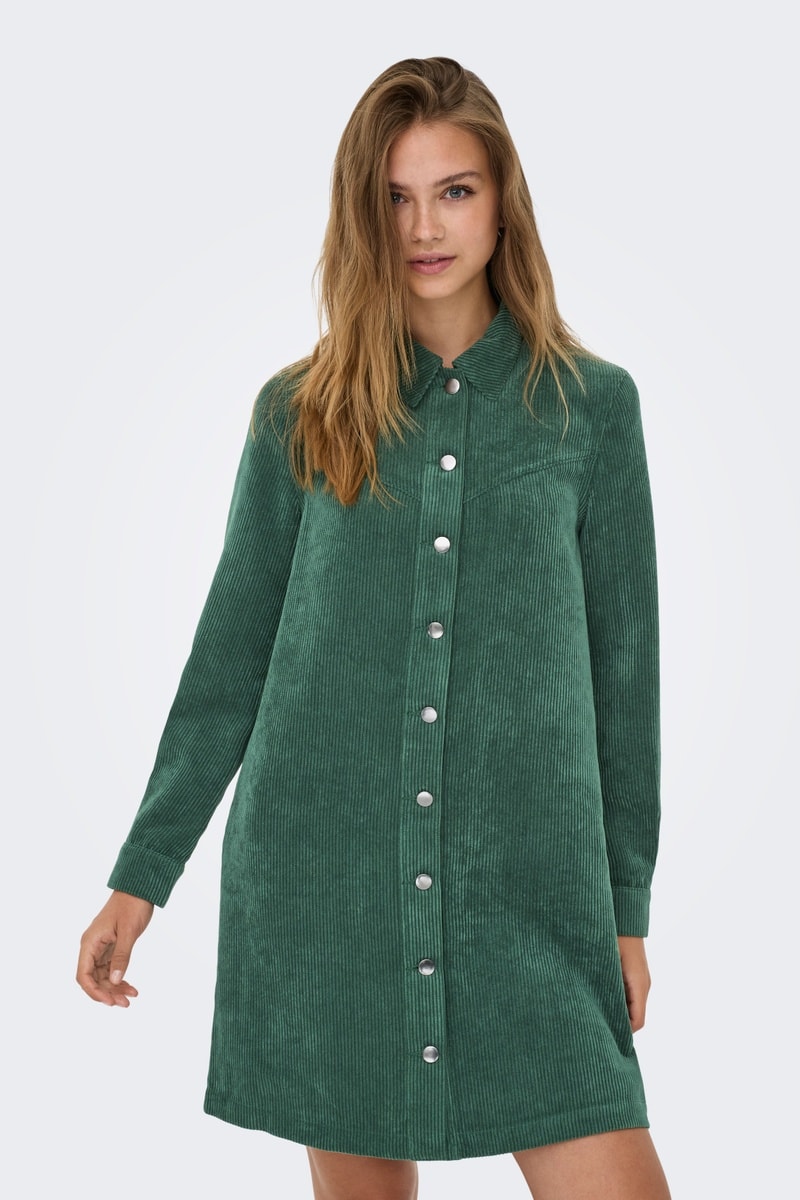 Robe chemise en velours - Vert foncé