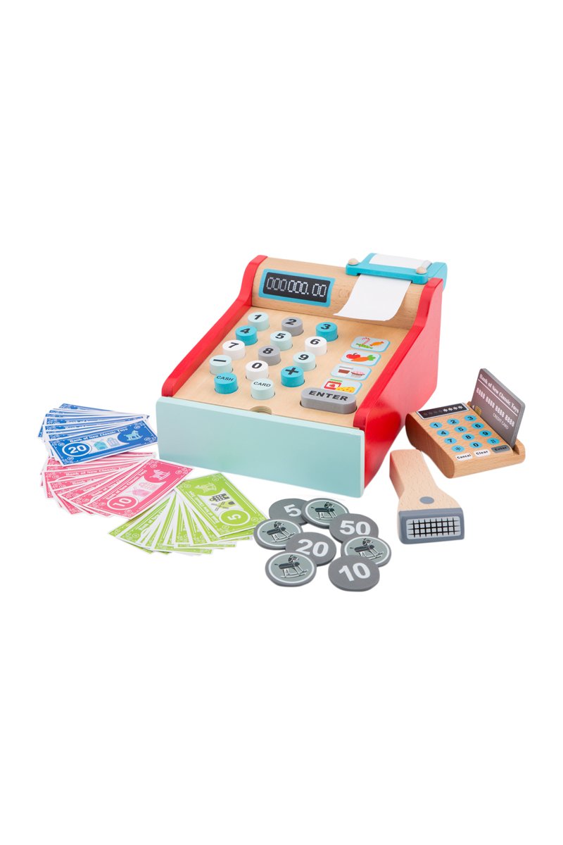 Caisse enregistreuse en bois pour la marchande comprenant :