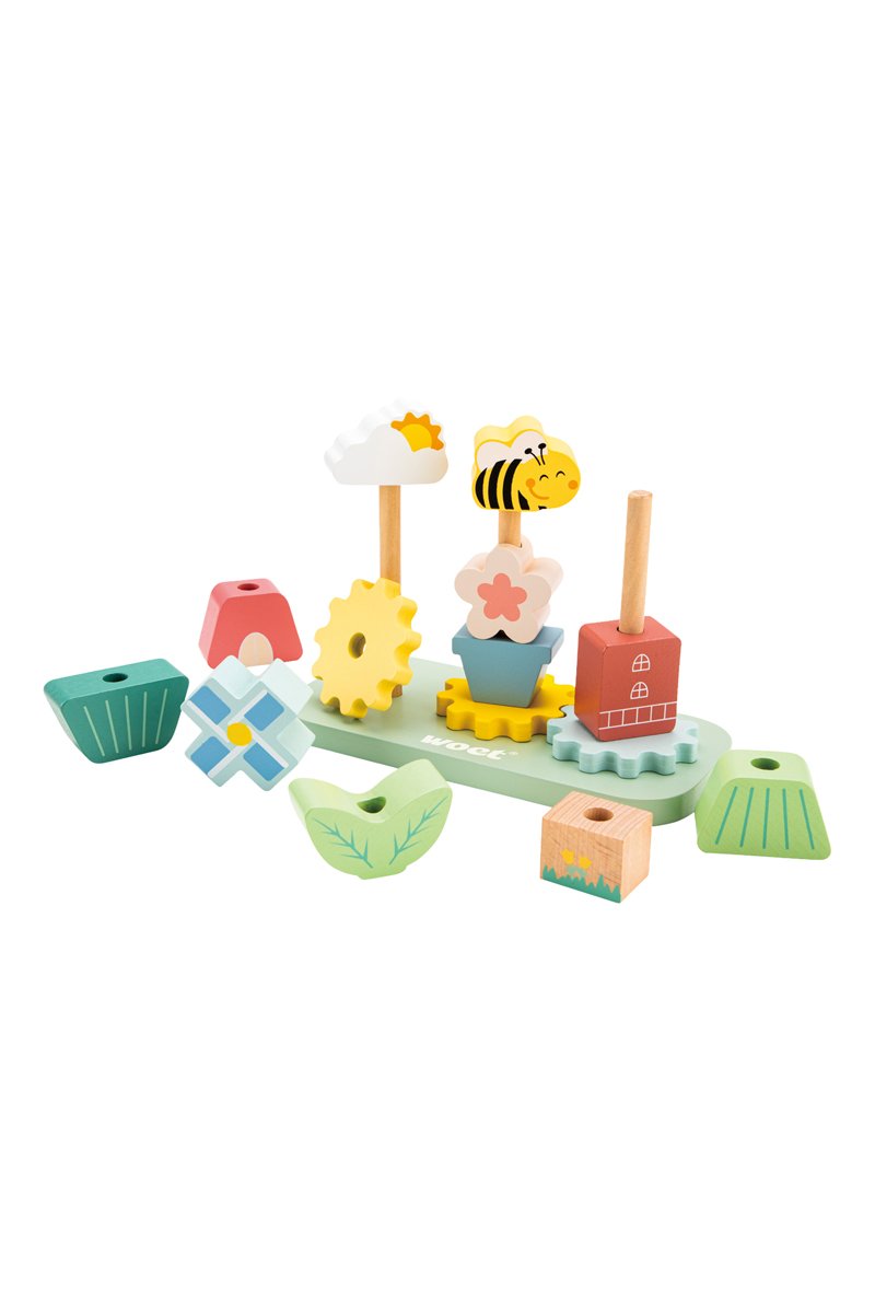 La base robuste assure la stabilité, tandis que les trois tiges d'empilage et les 14 formes à empiler offrent des possibilités d'empilage infinies et un jeu imaginatif.