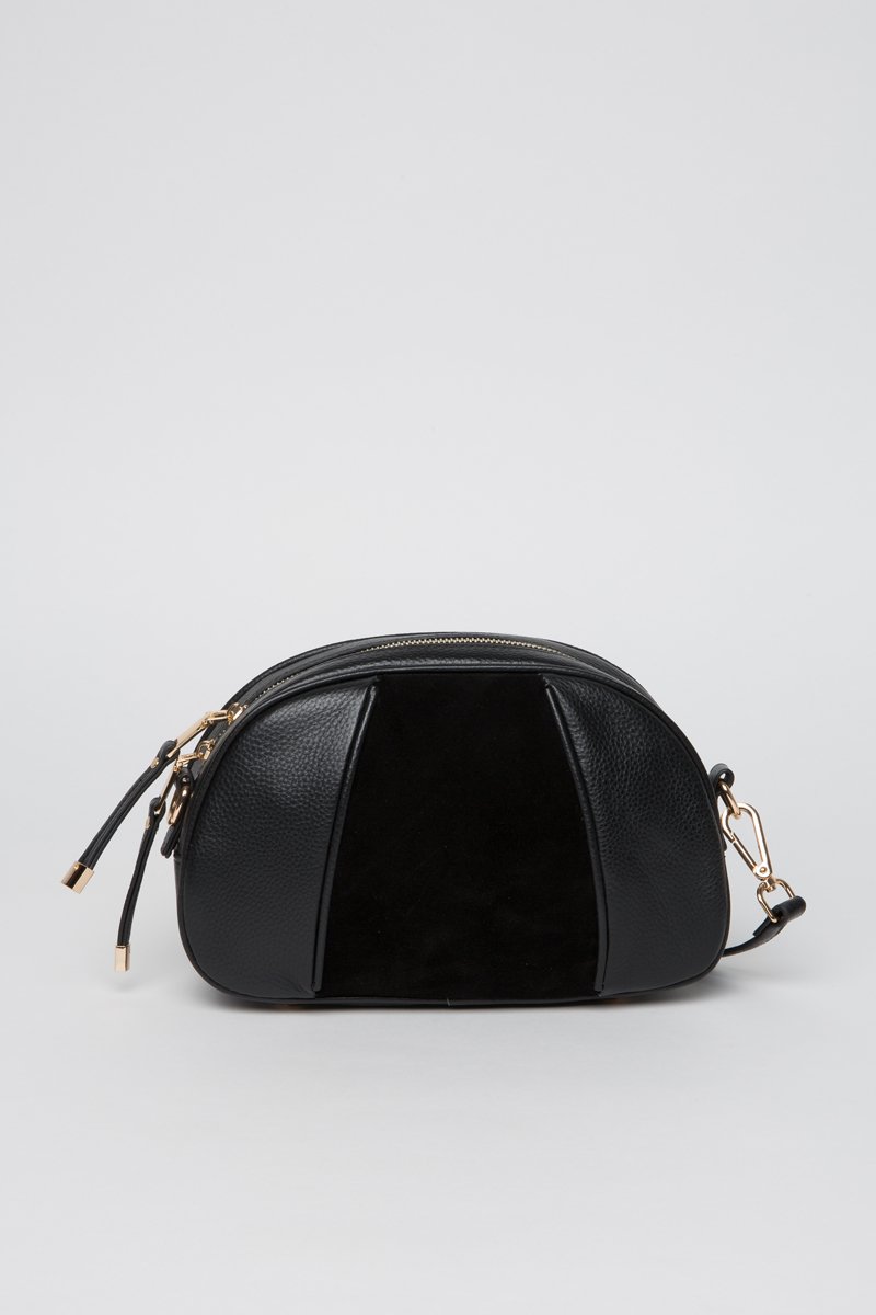 Sac bandoulière en cuir grainé et nubuck.