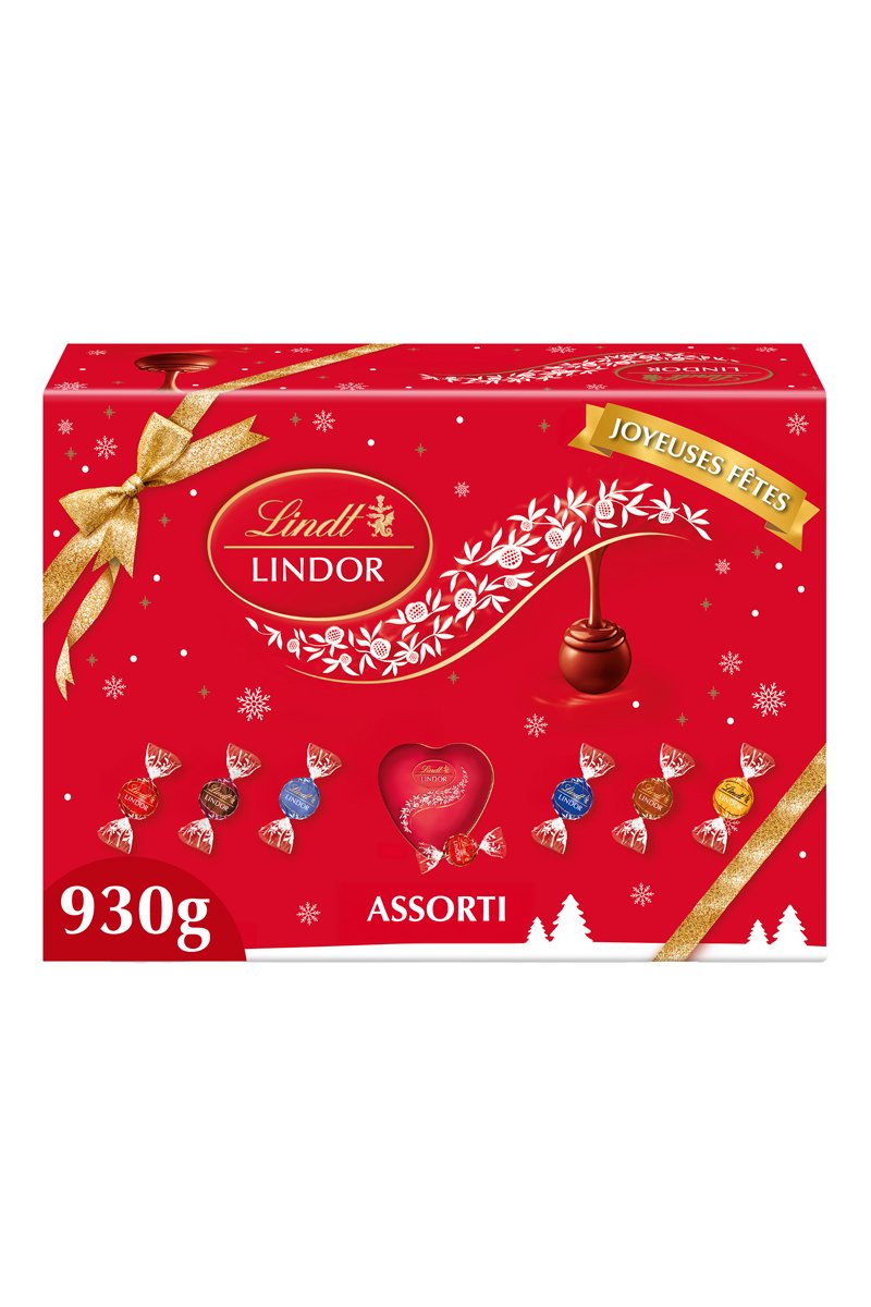 Pour Noël, craquez pour notre nouvelle boîte cadeau Lindor 930 g, un assortiment exclusif regroupant le meilleur des recettes Lindor (Chocolat au Lait, Noir 45%, Blanc, Noisette, Cœur Blanc, Double Chocolat), ainsi qu'une boîte cœur.