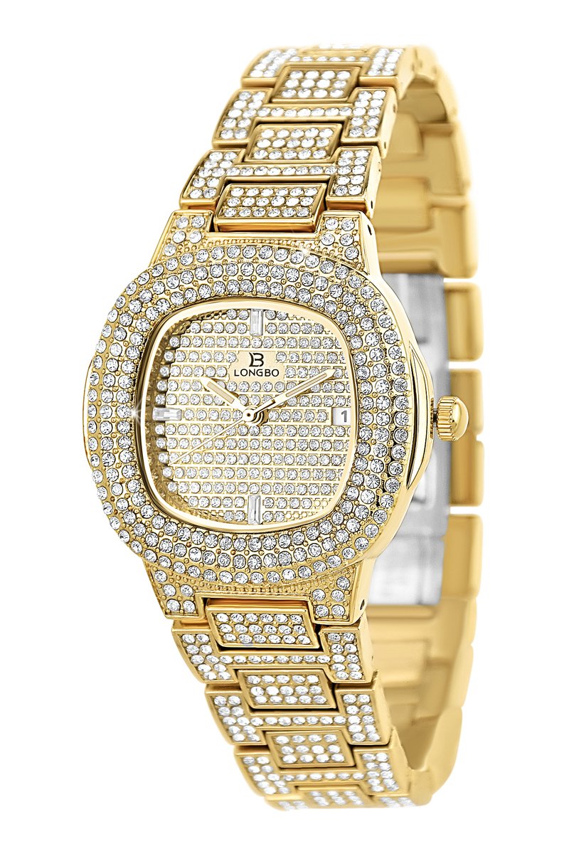Cadran, lunette et bracelet sertis de cristaux de Bohème.