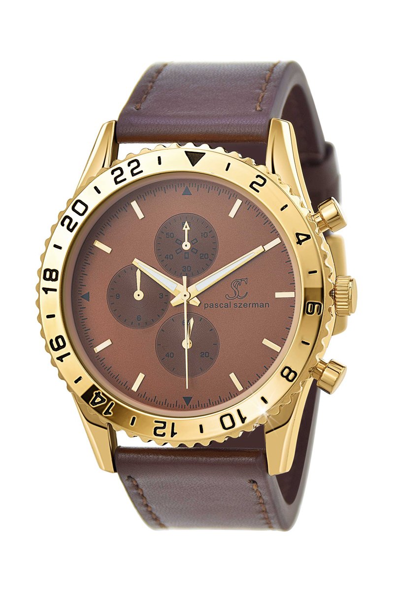 Montre à quartz en cuir Pascal Szerman - Marron - Chronographe et tachymètre