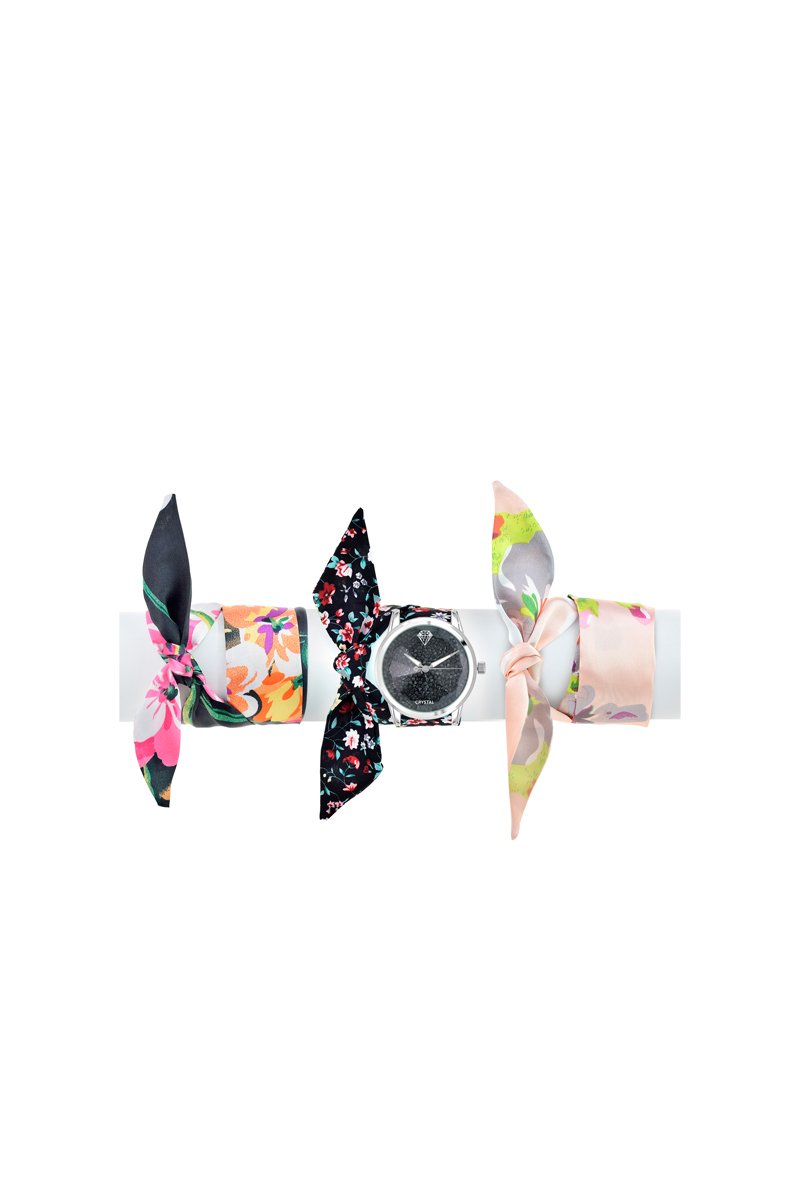 Montre à quartz et 3 bracelets en polyester - Noir et argenté