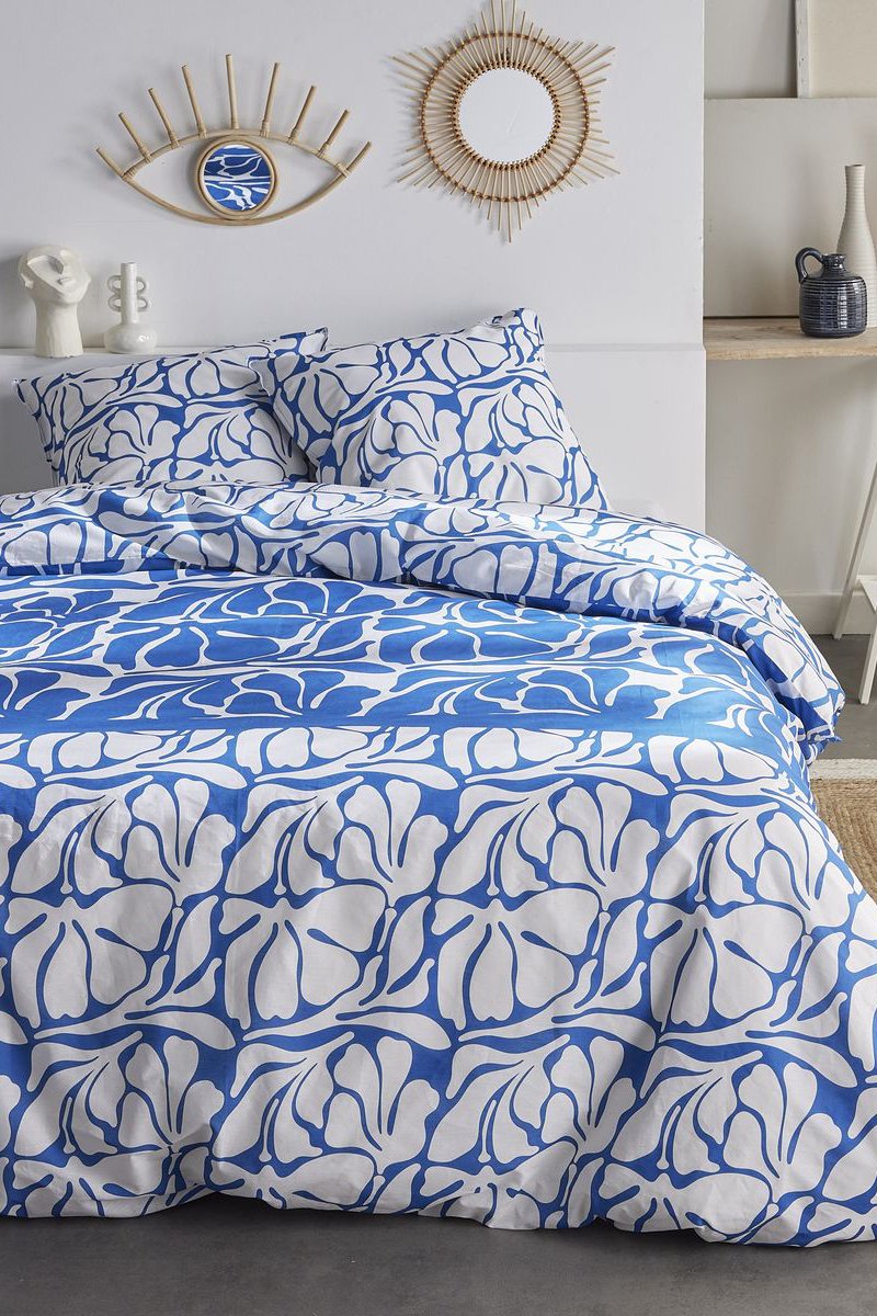 Parure de couette en coton 57 fils/cm² Sunshine - Bleu et blanc