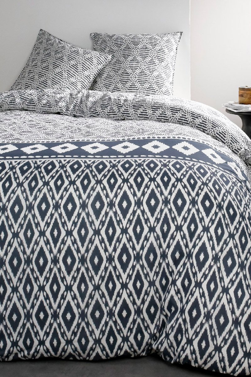 Parure de couette en coton Sunshine - Blanc et bleu marine