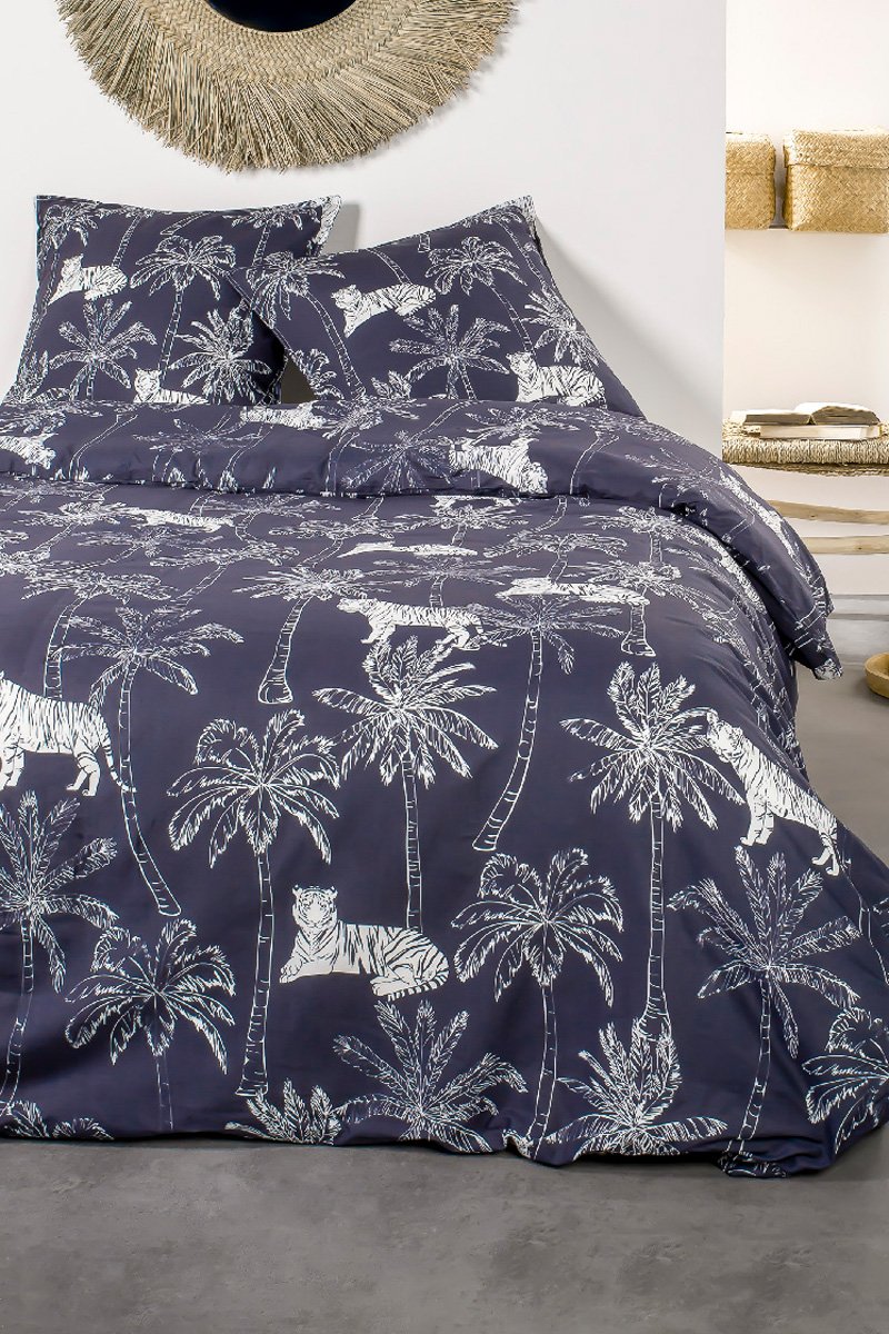 Motifs palmiers et tigres.