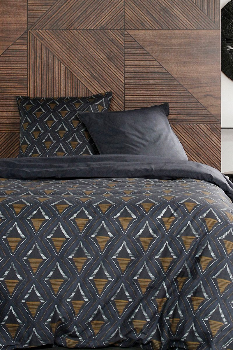 Parure de couette en coton 57 fils/cm² - Bleu anthracite, orange et blanc