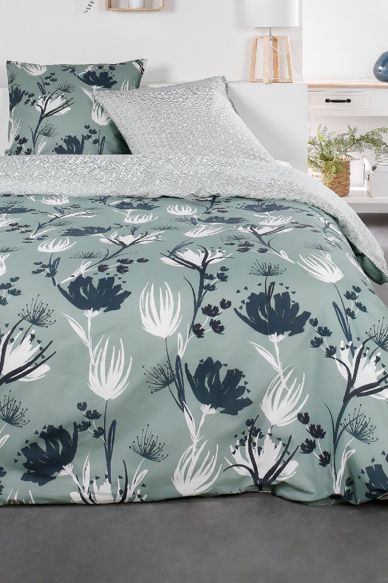 Parure de couette en coton Sunshine - Vert d'eau et gris
