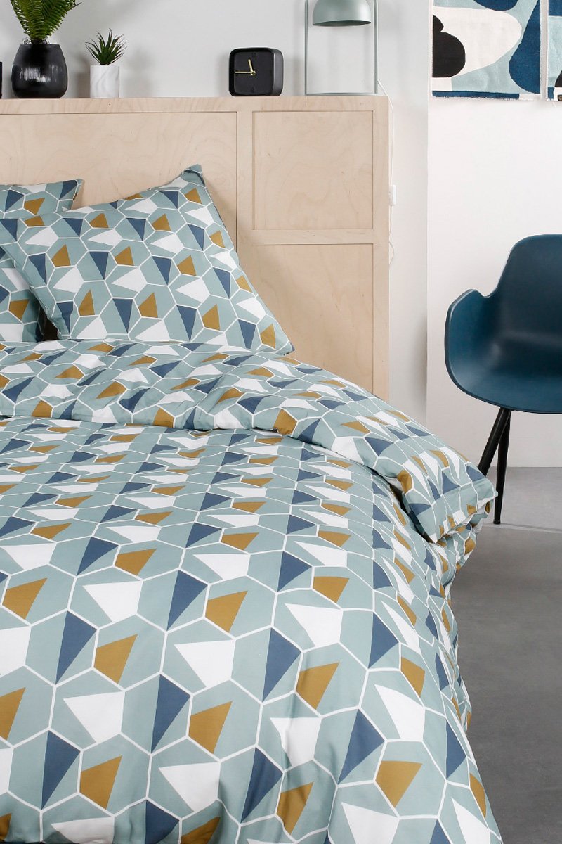 Parure de couette en coton Mawira 2.19 - Ecru et vert d'eau