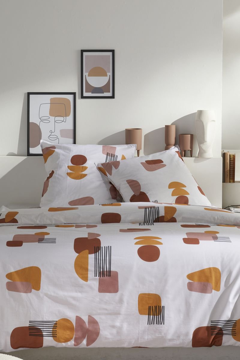 Parure de couette en coton 57 fils/cm² Retro mood - Blanc et orange