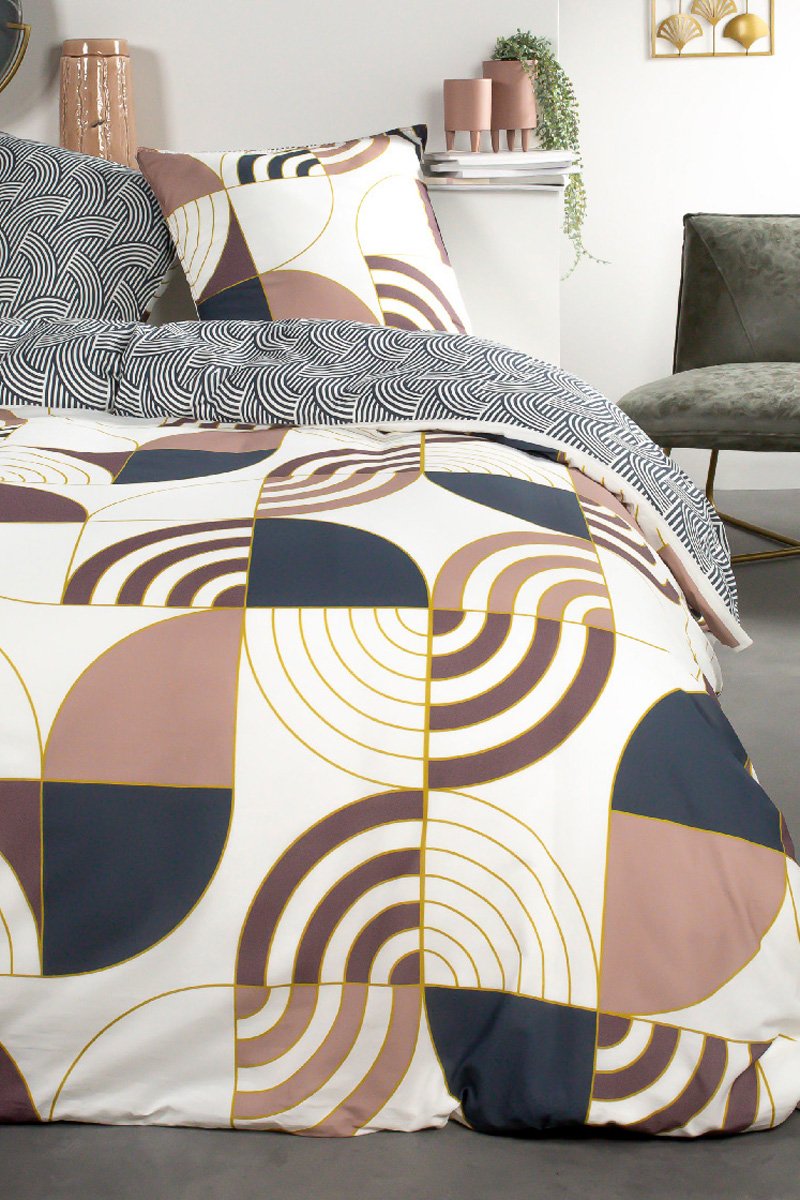 Parure de couette en coton 57 fils/cm² Sunshine - Ecru et rose