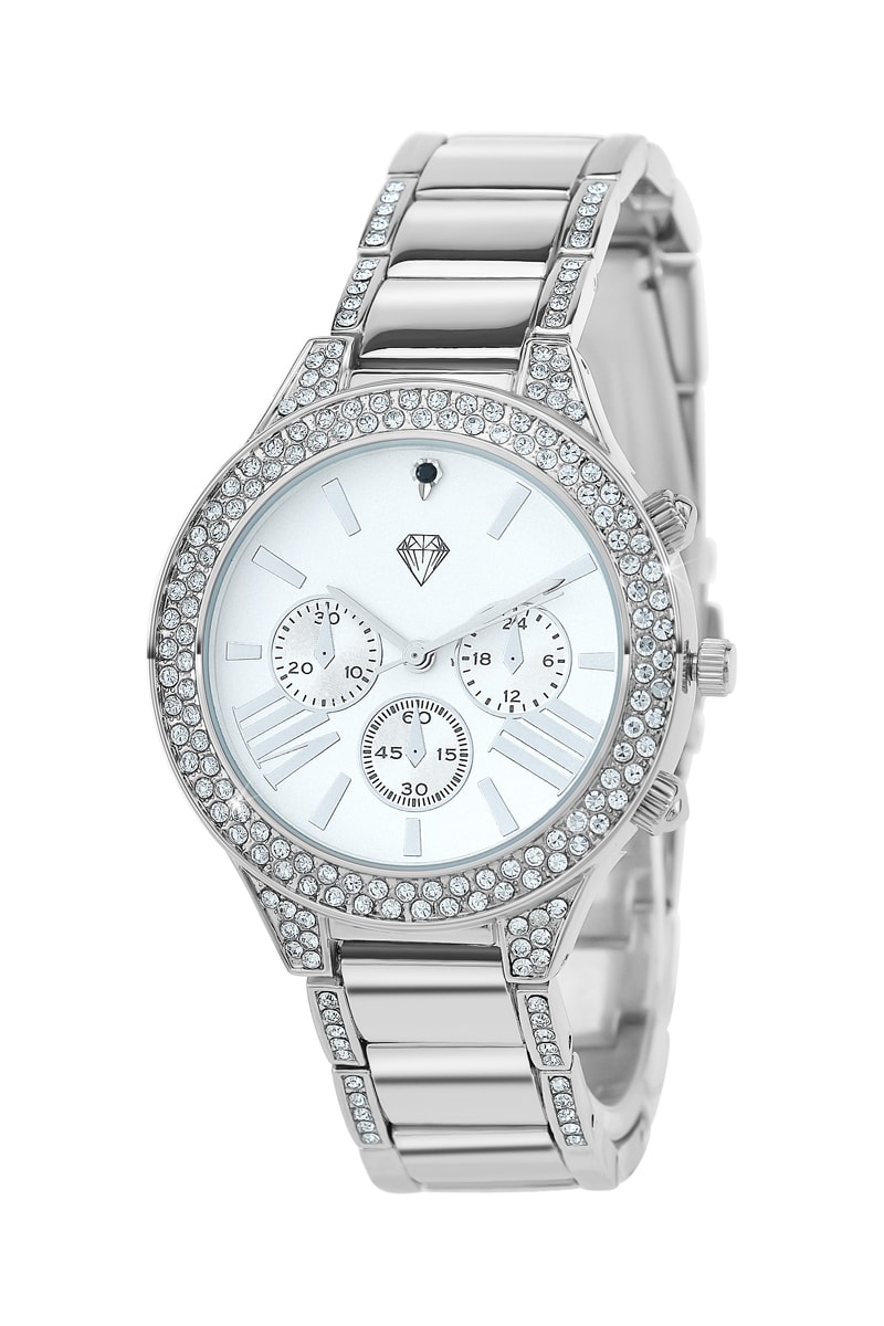 Montre à quartz sertie de diamant noir, cristaux scintillants en métal - Chronographe - Argenté