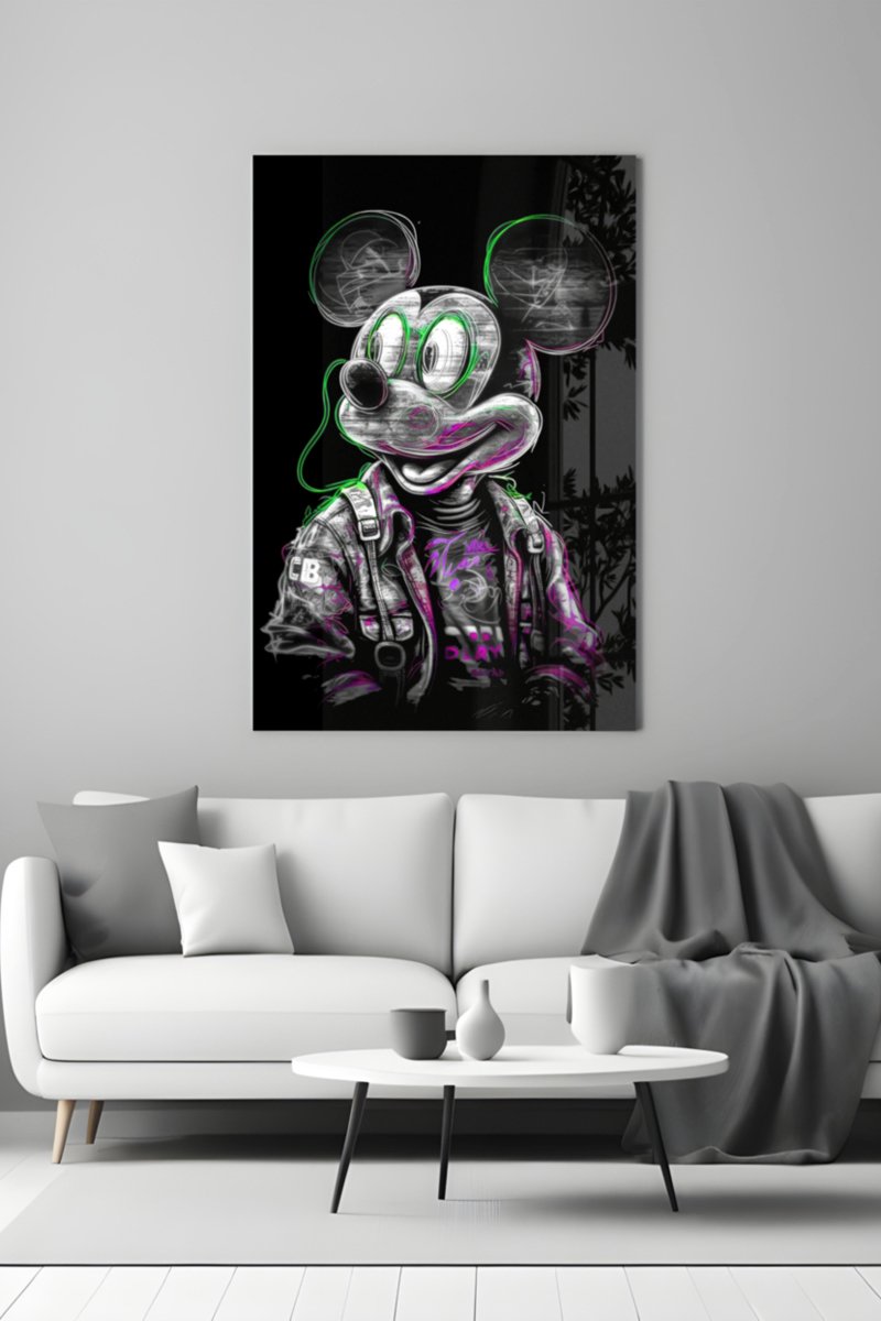 Tableau Mickey Disney en verre trempé Neon Mouse