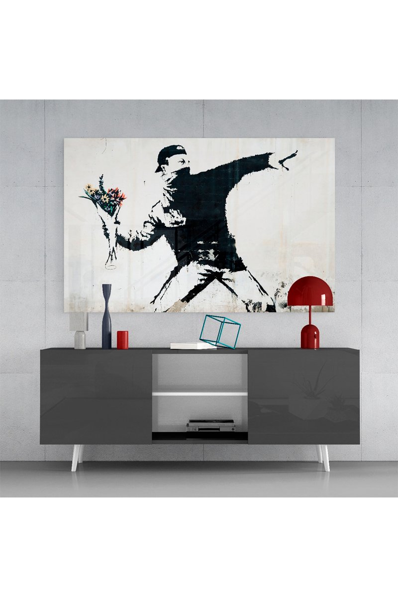 Tableau en verre trempé "Flower Thrower" - Banksy - Reproduction