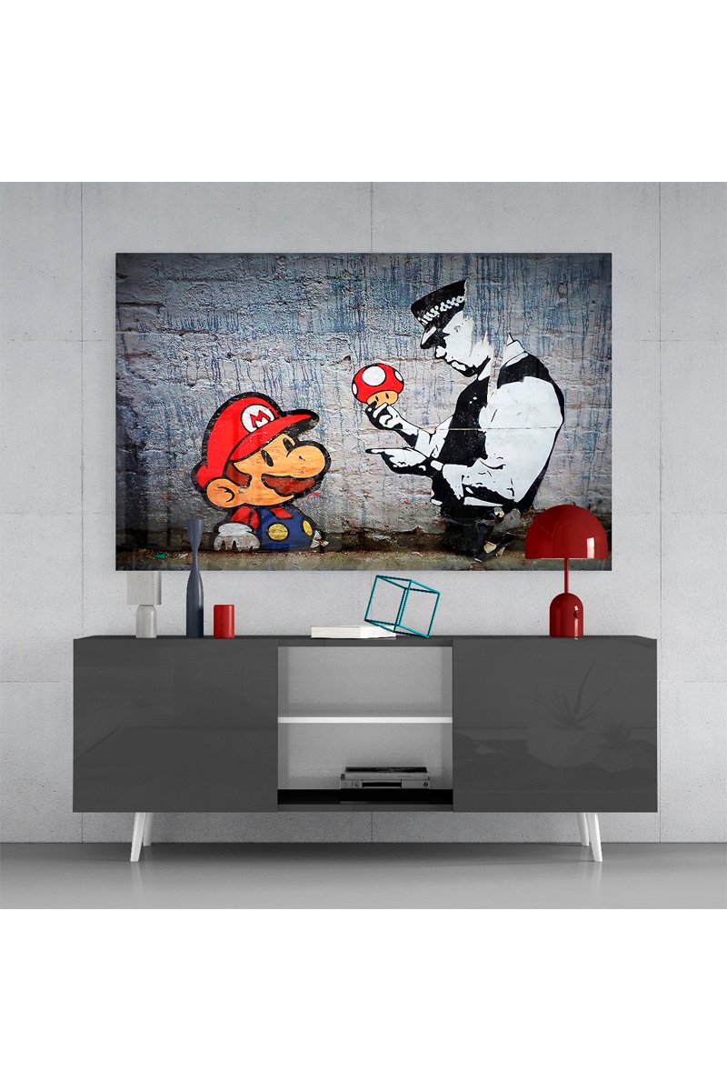 Tableau en verre trempé "Mario et policier" - Banksy - Reproduction