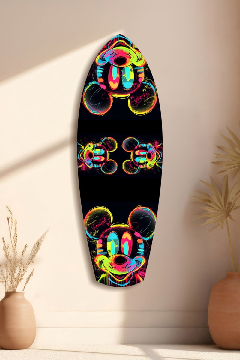 Décoration murale en verre trempé Neon Mickey Disney - Noir et jaune
