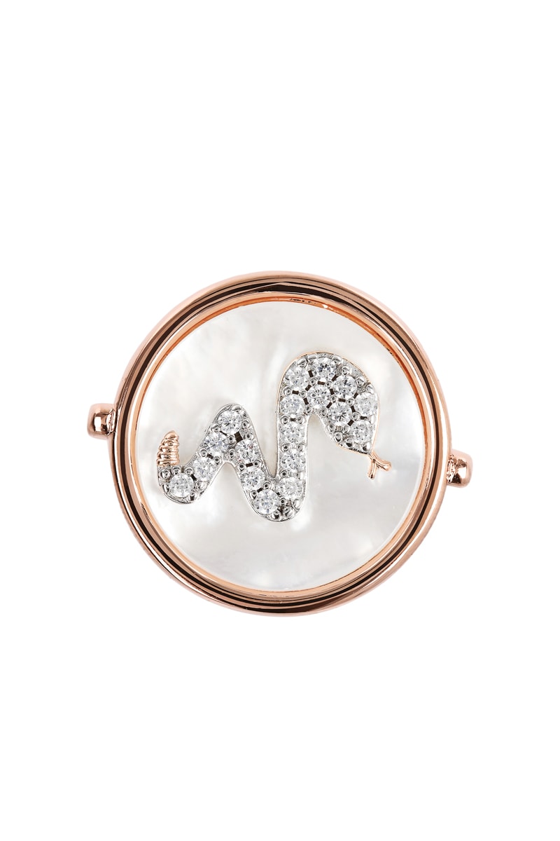 Bague en plaqué or rose sertie de nacre et de zircones cubiques.