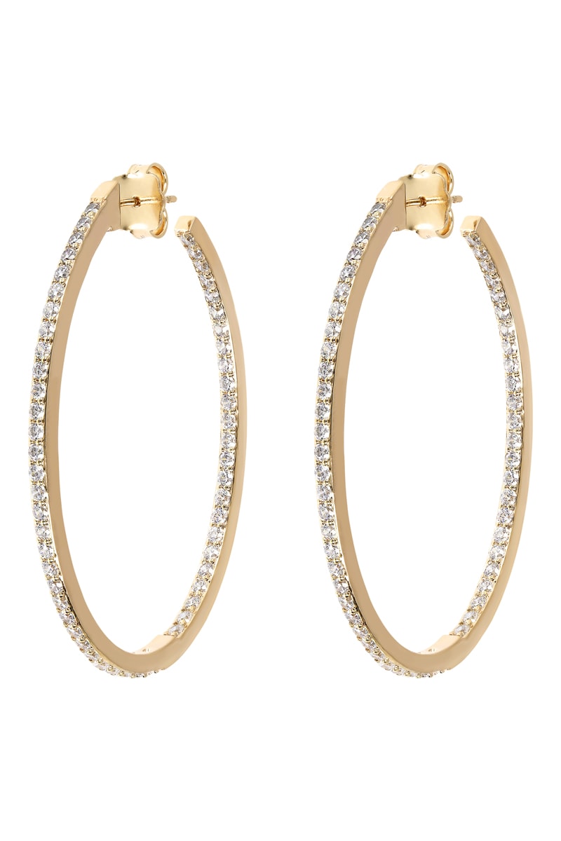 Créoles en plaqué or jaune serties de zircones cubiques.