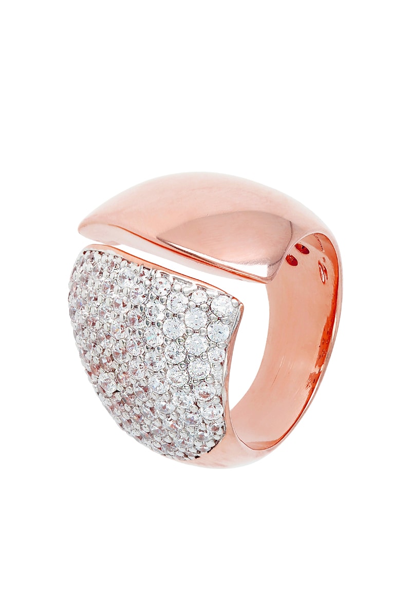 Bague réglable en plaqué or rose sertie de zircones cubiques.