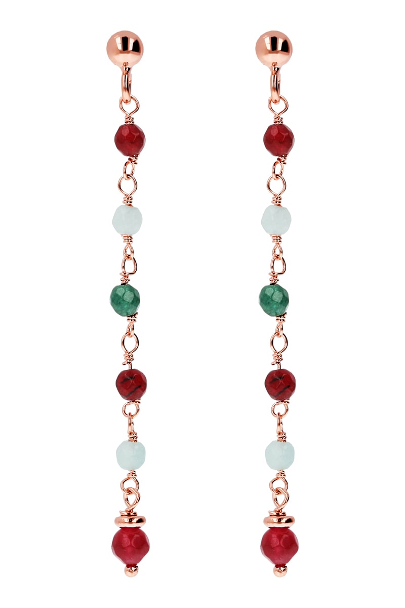 Boucles d’oreilles pendantes en plaqué or rose serties de 6 quartz.