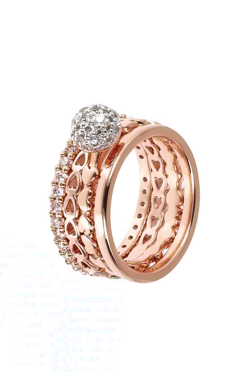 4 bagues en plaqué or rose dont 2 serties de zircones cubiques.