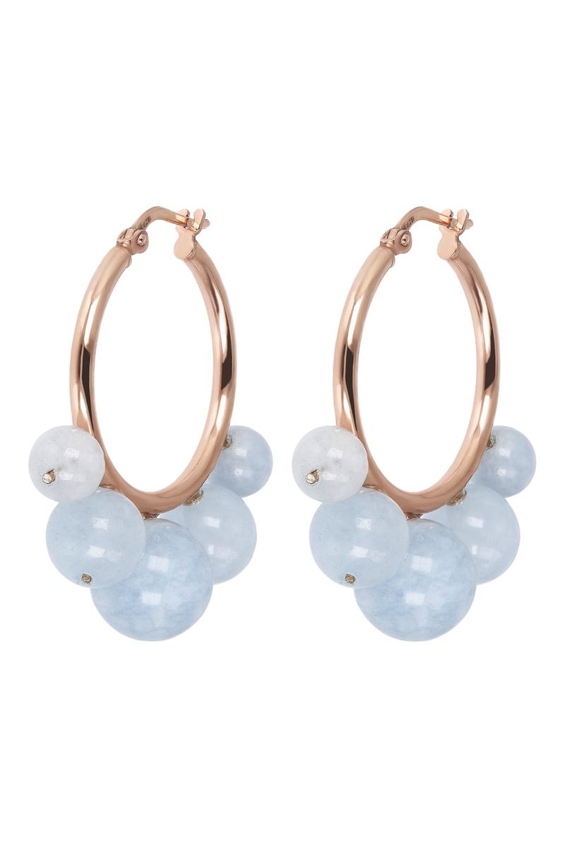 Créoles en plaqué or rose serties de 5 aigues-marines.