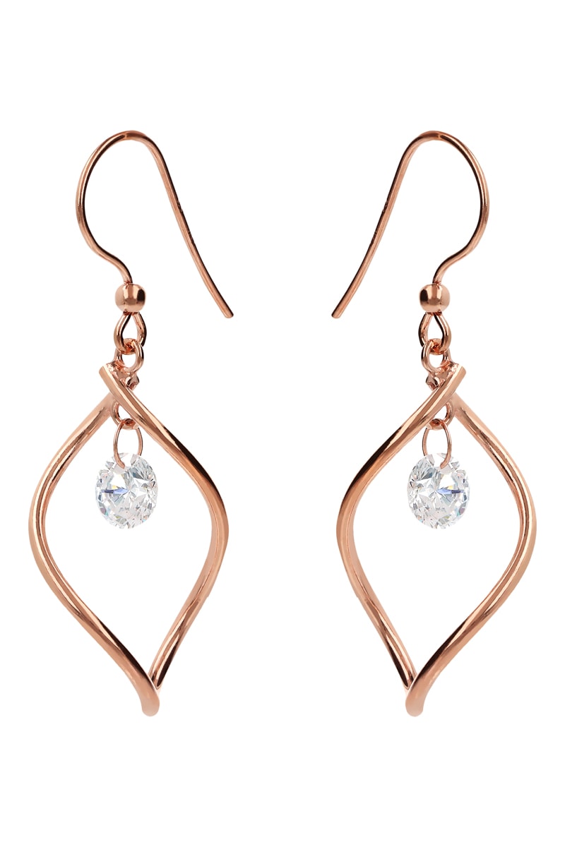 Boucles d’oreilles pendantes en argent plaqué or rose serties d’une zircones cubiques.