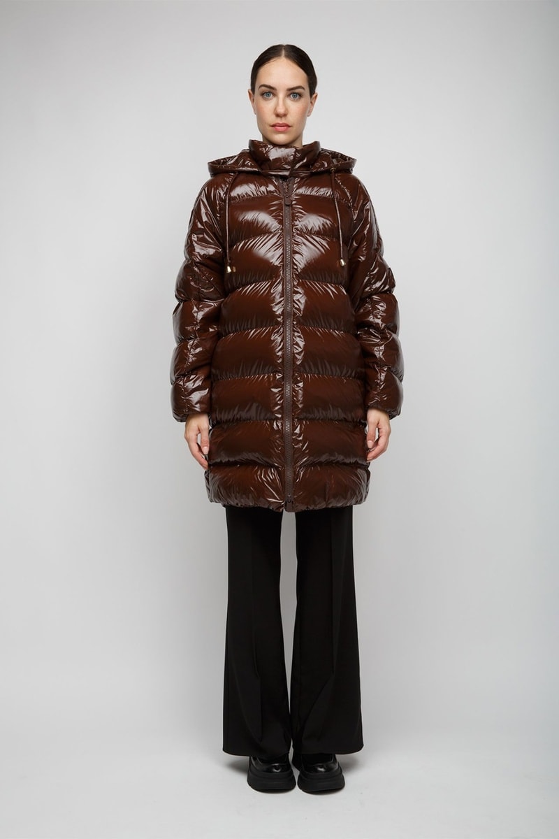 Doudoune matelassée à capuche Burro Imbottito Crystal Nylon - Marron brillant