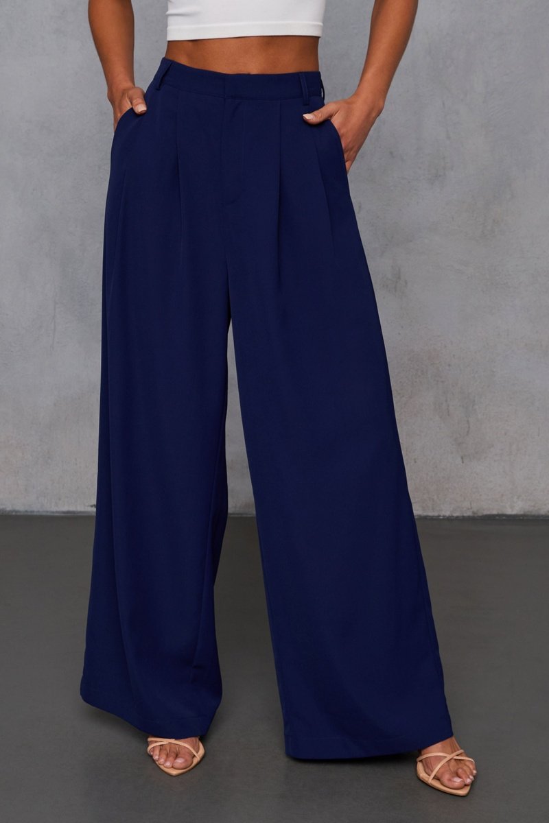 Pantalon taille haute - Bleu marine
