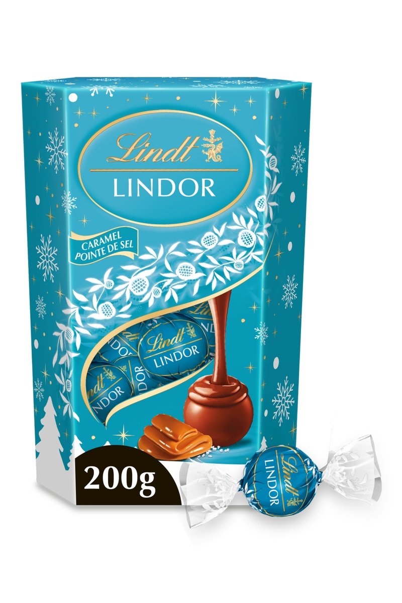 Pour les fêtes de Noël, découvrez le nouveau cornet Lindor Caramel Pointe de Sel 200 g, une recette ultra gourmande dans un format idéal à partager entre amis ou en famille, qui fera fondre de bonheur les plus gourmands, et surtout les amateurs de chocolat caramel pointe de sel !