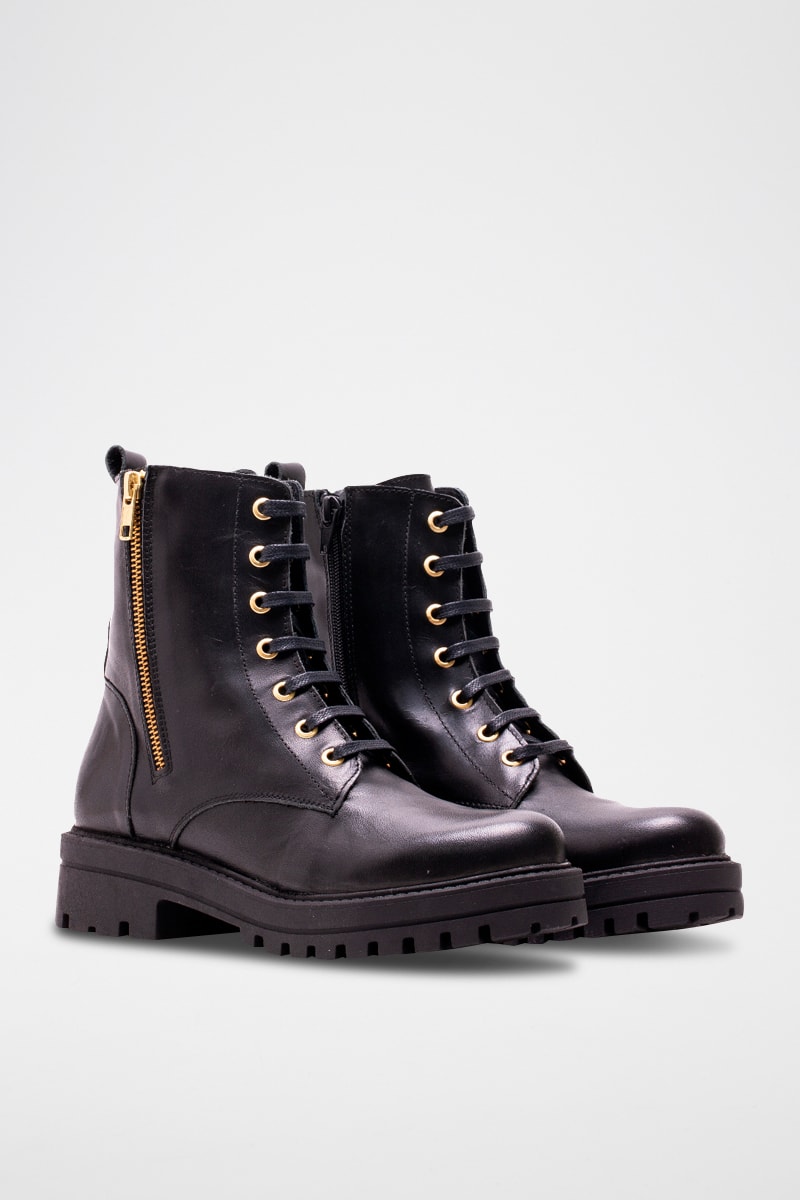 Fermeture à lacets devant et zippée sur les côtés.