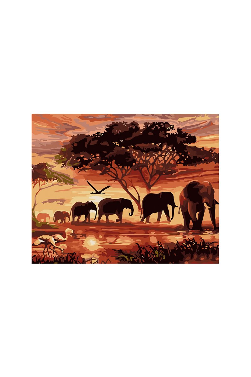 Peinture par numéro éléphants d'Afrique - 40 x 50 cm - Dès 3 ans