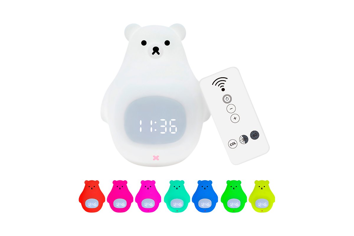 Réveil avec veilleuse LED multicolore pour enfant - Blanc