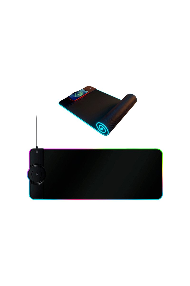 Tapis de gaming avec LED et chargeur rapide sans fil Qi - Noir