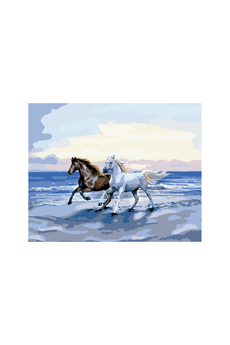 Toile à peindre numérotée - Chevaux et océan