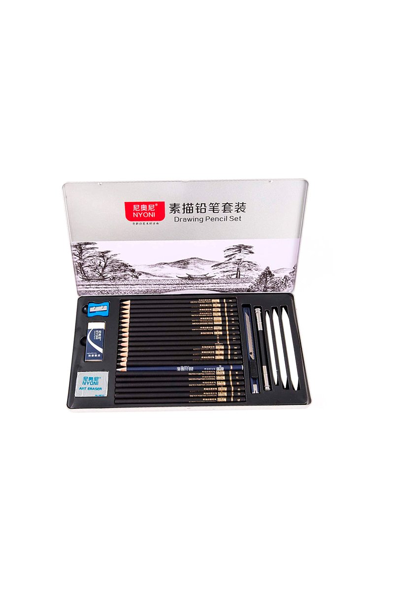 - 14 crayons de croquis de différentes épaisseurs et duretés (H-14B)