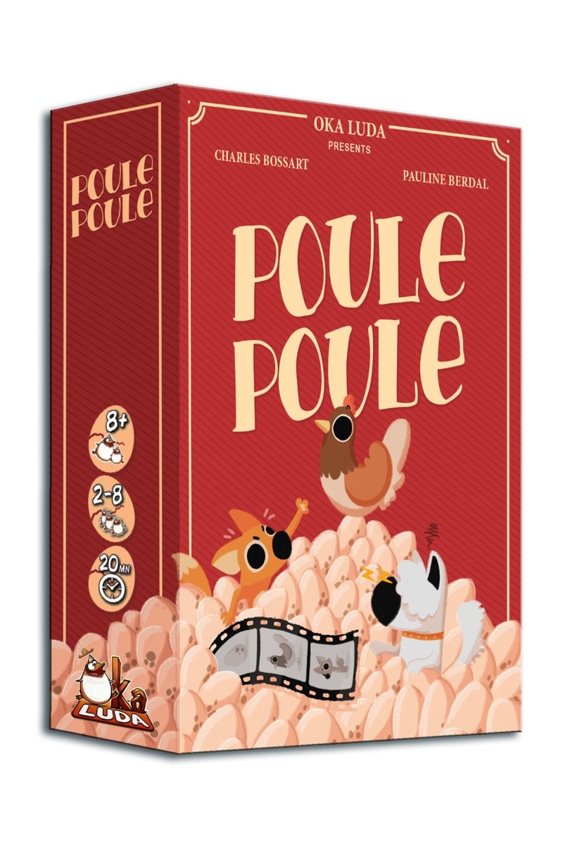 Règles du jeu : le réalisateur, appelé le “Maître Poule Poule”, va empiler les cartes, une par une, les unes sur les autres au centre de la table. Pendant ce temps, les autres joueurs devront juste compter les Œufs “disponibles” et être le premier à taper sur le tas dès qu’il y en a 5… facile non? Attendez-vous à quelques perturbations tout de même… car : Voici un Oeuf “disponible”, fraîchement pondu… COMPTEZ 1 ! (Vous avez peut être entendu parler de Crack, un talent prometteur, pour la première fois à l’écran dans un rôle de composition !) Lorsqu’une poule vient couver un œuf – hop ! – il disparaît… COMPTEZ 0 ! (Vous aurez sans aucun doute reconnu la célèbre Cocotte) Et lorsqu’un renard chasse une poule – hop?! – elle s’enfuit?! Et donc, un œuf revient?! COMPTEZ 1 ! Sinon, ça serait trop simple… (Il n’est plus nécessaire de présenter le grand Grrr, le tombeur invétéré de ces poules…) Sans oublier le reste du casting… Oeuf, Poule, Renard, le monde serait bien triste si nous en avions déjà fait le tour… Voici le reste des personnages : De gauche à droite : Rico Coco (au passé tumultueux) ; Waf (le cousin de Paf) ; le Fermier ; Tiger Worm (celui qui fera son trou) ; Crack et Double (qui n’ont pas l’intention de rester dans leur coquille) ; Coin (l’ambitieux qui n’y reste pas…) ; et Grrr (essayant de se faire passer pour une poule, qu’est-ce-qu’il ne faut pas faire pour entrer dans la basse-cour…) Ni les humeurs du Maître Poule Poule… Que le fermier ait la gueule de bois ce matin-là, et qu’il décide de ne pas ramasser les œufs d’autruche, ou bien que le canard soit affamé et décide de manger le vers, tout cela, c’est le machiavélique Maître Poule Poule qui le décide, puisqu’il a tous les droits ! Mouaaaaa ! Mais rassurez-vous, vous le deviendrez-vous aussi car ce rôle passe de joueur en joueur ! Bonnes parties!